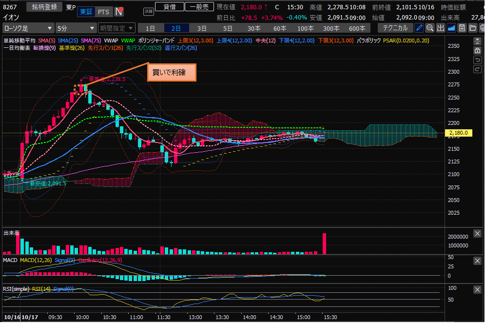 ・寄り道で、サンリオ、イオン(超高値圏)でかろうじて利確。