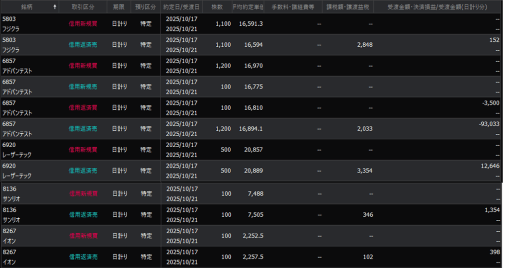 ・アドバンテスト、一気に下落。。損切できずに傍観、、、そこで買って利確するも、含み損相当まで戻せず、、、TOTAL10万マイナス。。なんだこの売り圧。。。。。