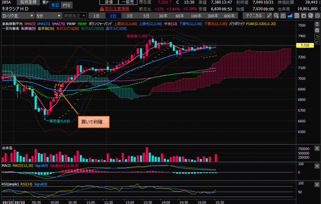 ・キオクシア、下げからの上昇の途中で買いエントリして即利確。(VWAP超えたあたりでエントリ)