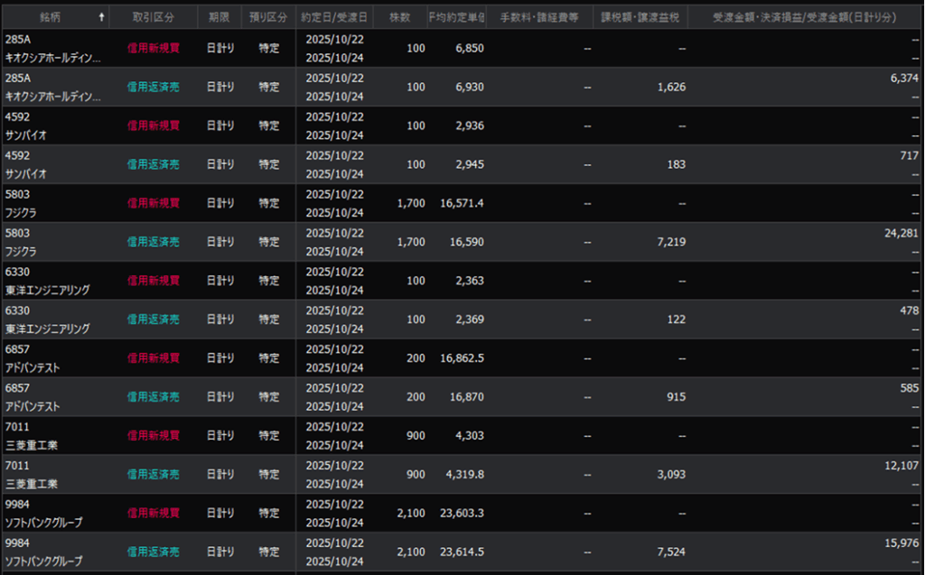 本日のデイトレ