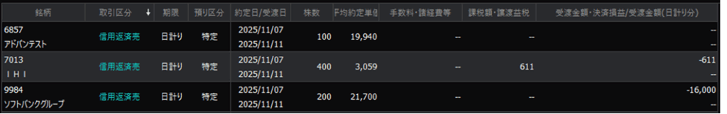 ・ソフトバンクグループ、引けまで待ったものの、戻し切らずグローズオークションまで引っ張り、損切確定。