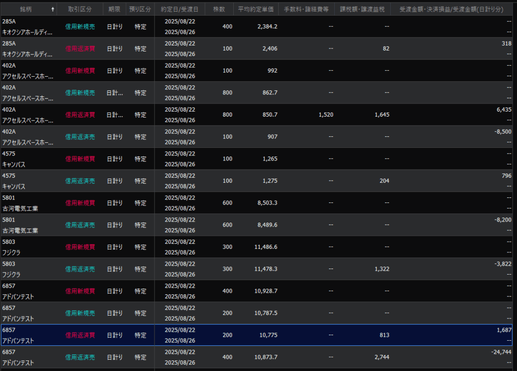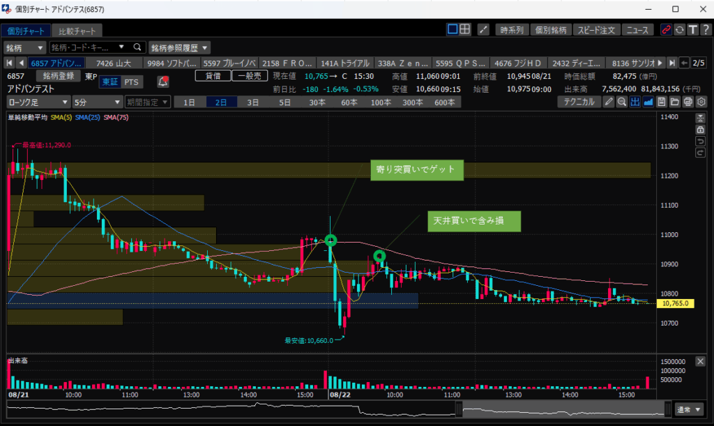 ・アドバンテスト、買いでダメなら売りでとエントリ、、、またまた横横からの損切、、、、。どっちやねん!!