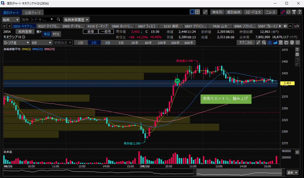 ・キオクシアに売りで突撃、、踏み上げーーーー。
