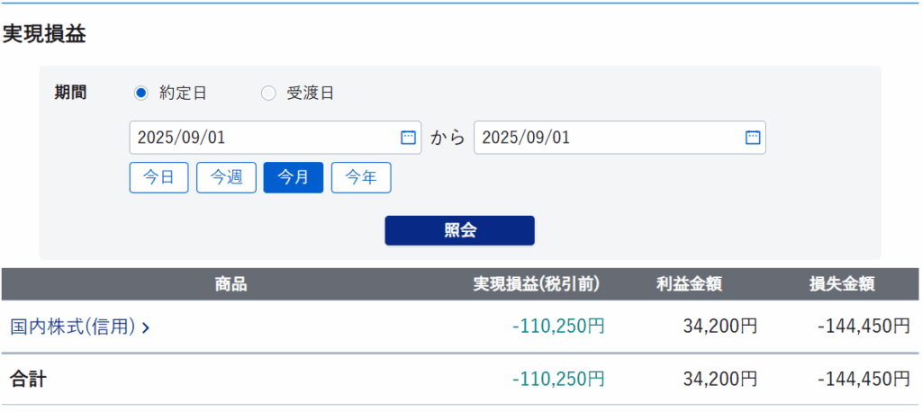 ・いい加減無理だと悟ったところでようやく損切。マイナス14万!。