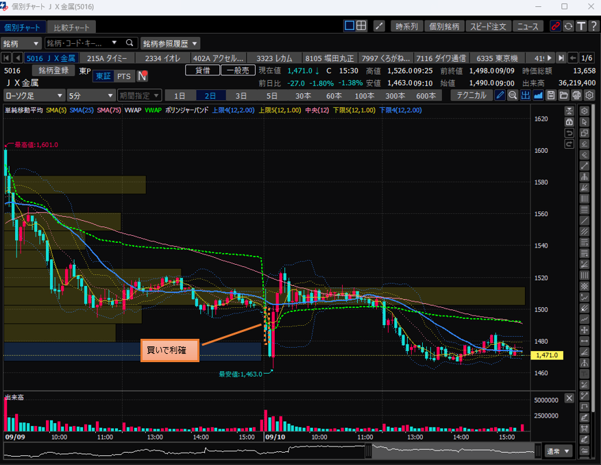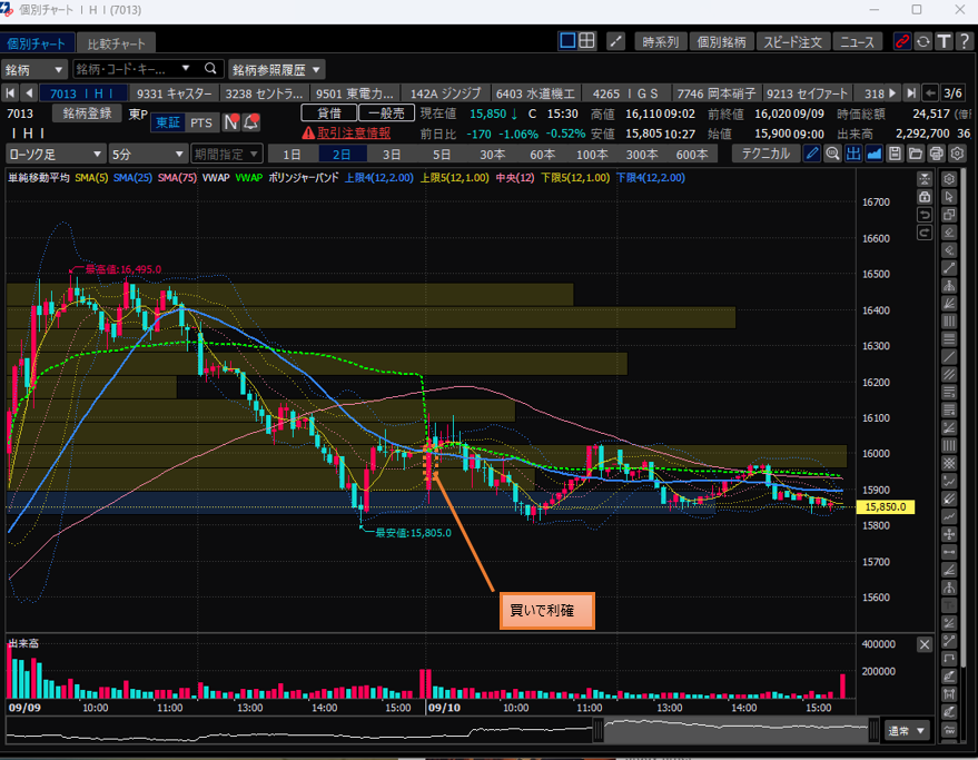 ・寄りからIHI,JX金属にて買いエントリ、微益で利確。