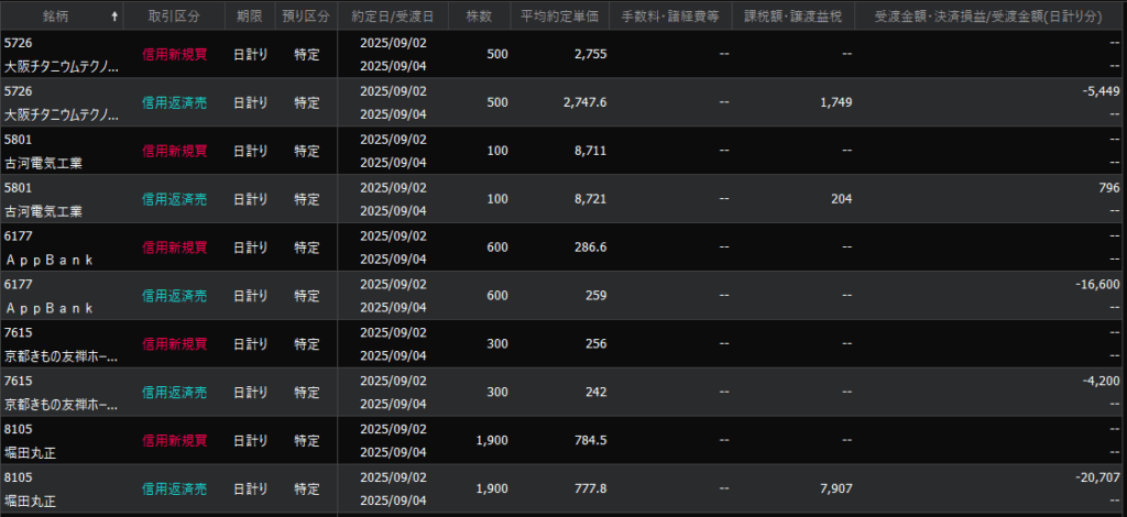 本日のデイトレ