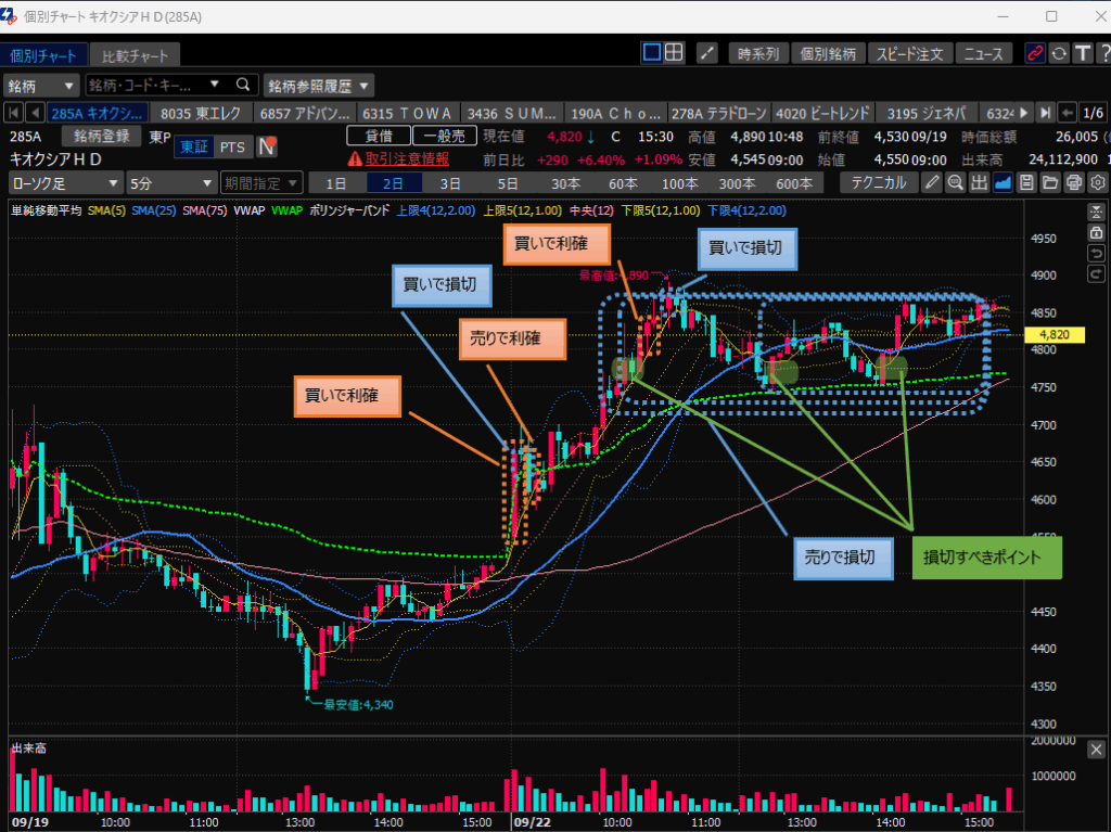 キオクシアでの踏み上げが敗因です。勝手に下げると思い込んで状況をみてそれを修正しない。できない。。だから負けるんです。
