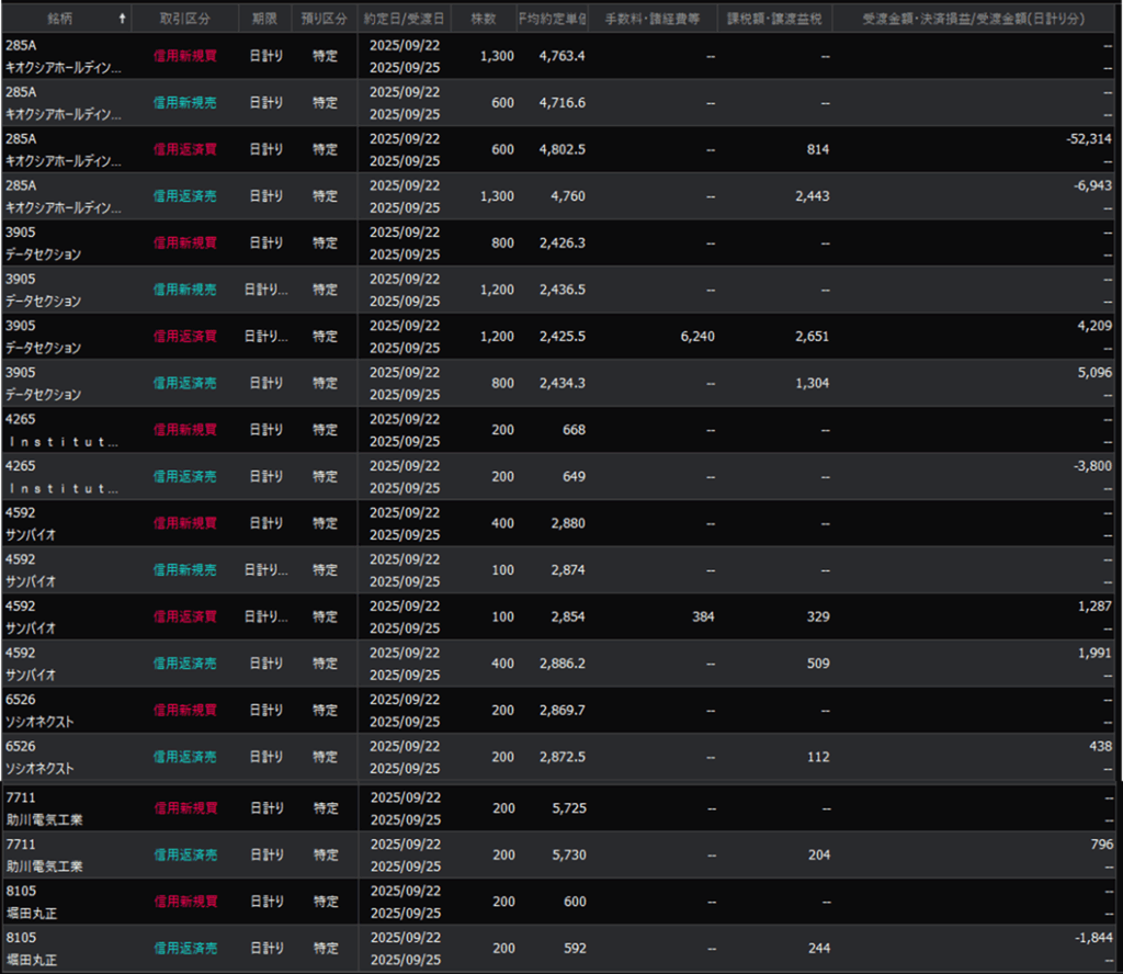 ・今日はキオクシアの下げを期待して過ごしてしまっていましたが、前場からジワジワの強さを感じてはいました。。。後場は下げそうとまだ思っていましたが、決定的に下げない、底を割らないという状況を見て軌道修正が必要でしたができず。これが敗因です。売り建ては下がりのそこで損切して逃げ、底から買いに転ずるのが正解でした。。。(もっと相場の状況に合わせて波に乗っていかないと常勝はできない。と思いました)
