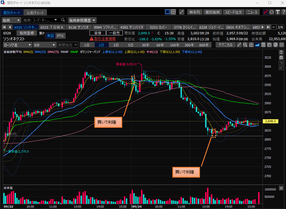 ・ソシオネクスト、寄り後の下げからの微上げで買い利確。(深追いせず)
