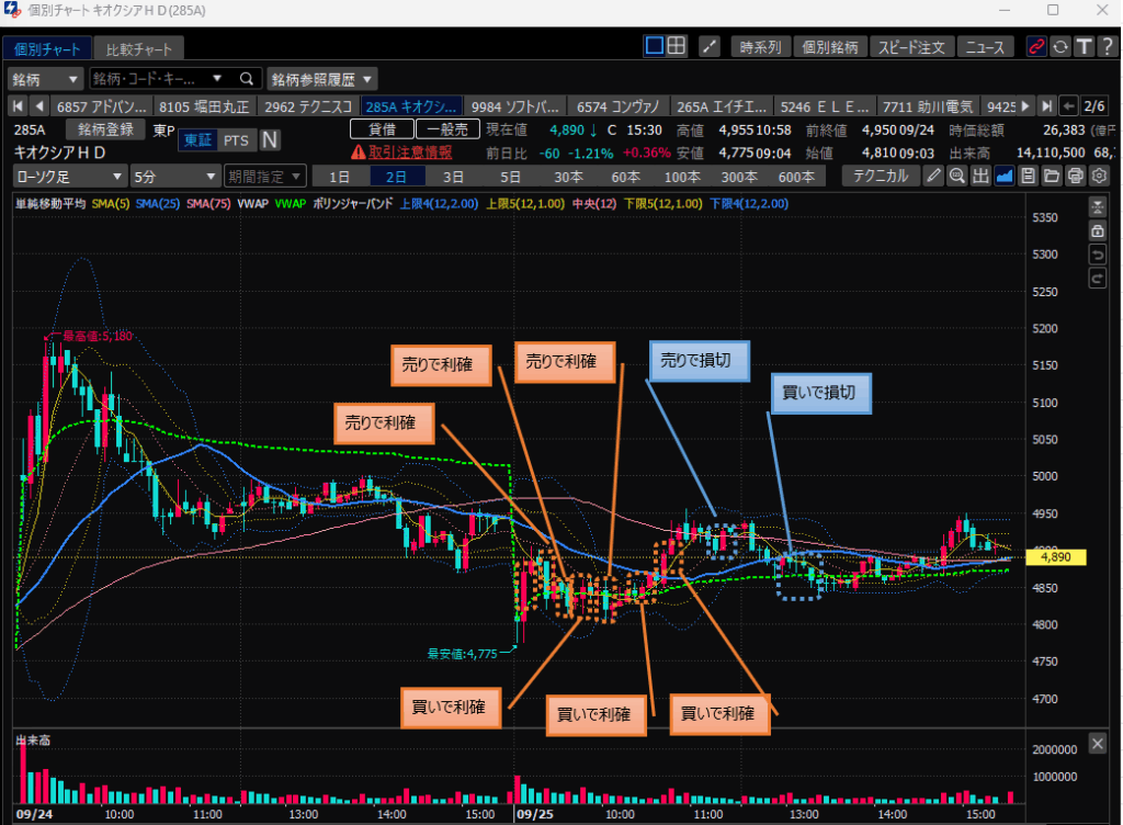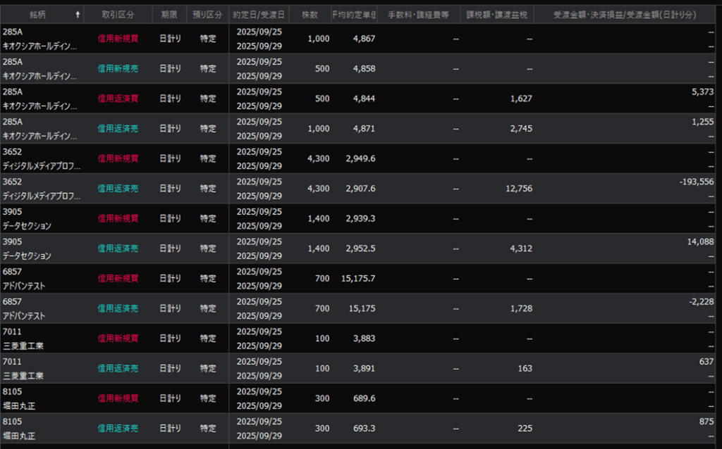 25/9/25(木)デイトレ日誌~また大損失(マイ転)。。力が欲しい、、、。