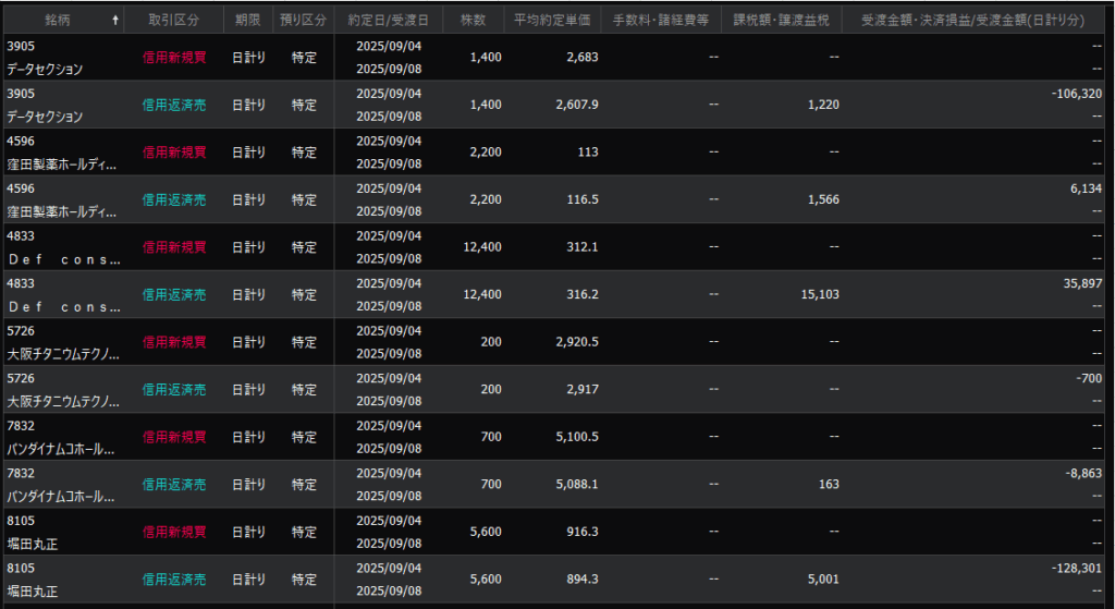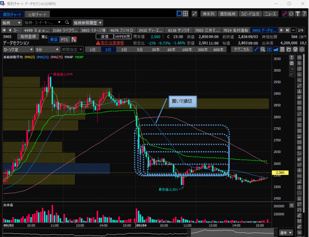 今日は主にデータセクションさん(売られ過ぎでリバなし、、)と堀田丸正さん(上げからのストップ安監獄へ収容)にやられました。。。
